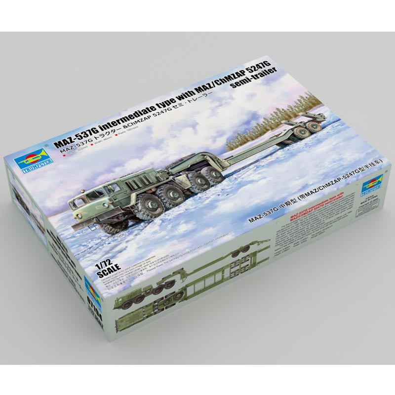 Maquette plastique de camion MAZ-537G intermediate type avec remorque MAZ/ChMZAP 5247G 1:72