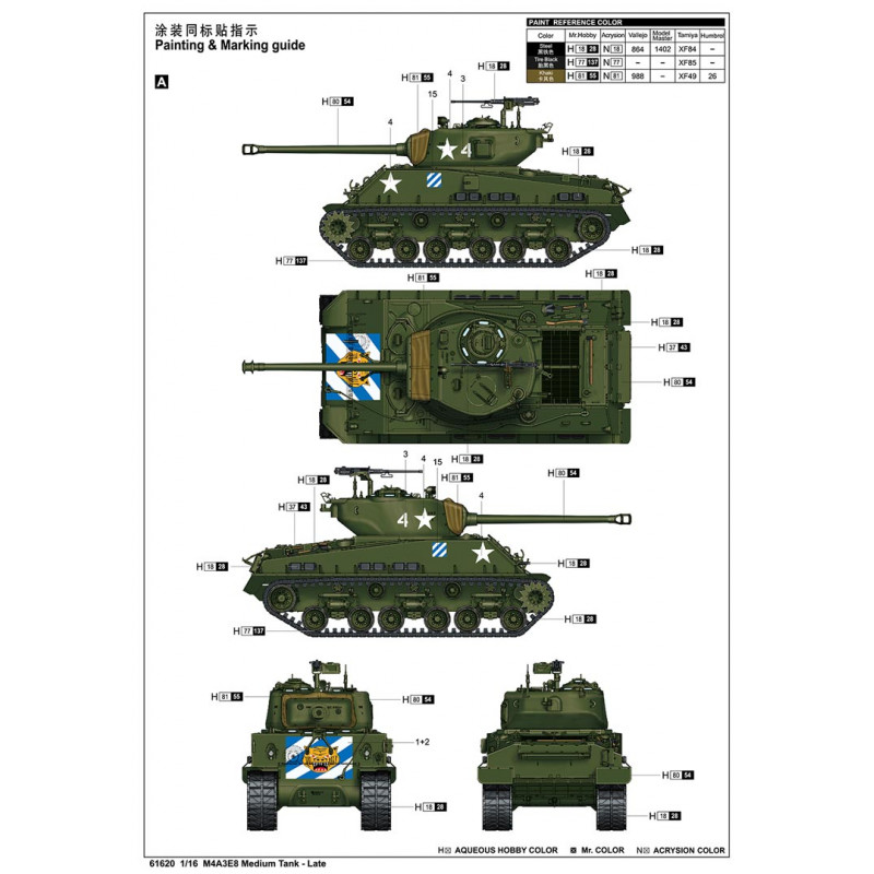 Maquette plastique de char M4A3E8 Medium Tank dernière version 1:16