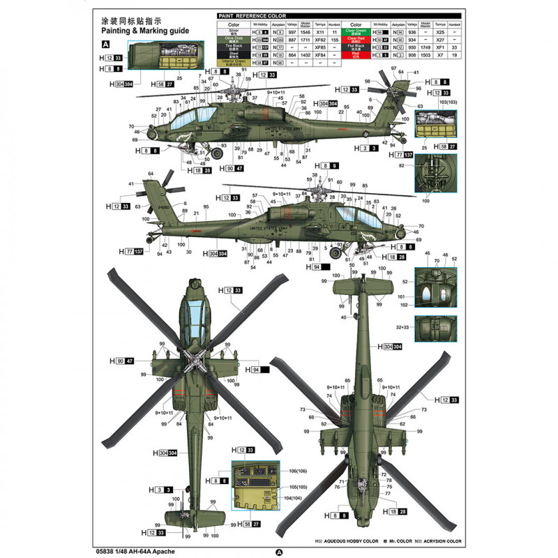 Plus de details En stock, disponible immédiatementModello in plastica dell'elicottero AH-64A Apache 1:48