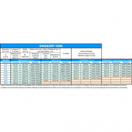 Motore brushless 2620P / Kv 1000 nuova serie POWER ProTronikMotore brushless di alta qualità, design francese.Per aeroplani fino a 3,3 kg / motoscafi fino a 3,9 kgKv 1000 / 133,2 g / 390 W