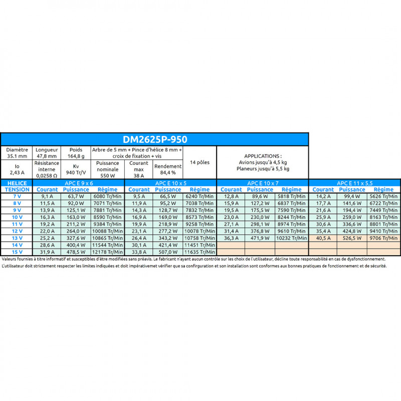 Come sempre nel modellismo elettrico, l'ottimizzazione delle prestazioni passa attraverso una scelta precisa del trio motore - batteria - elica, adattata in base al modello e al profilo di volo.