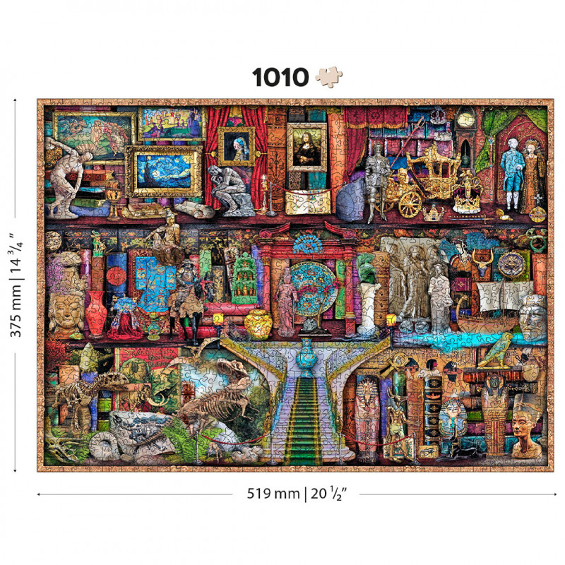 Scopri il puzzle in legno Museum Shelf da 1000 pezzi, un jigsaw puzzle dedicato agli adulti che celebra i grandi capolavori dell’arte e le meraviglie dei musei.