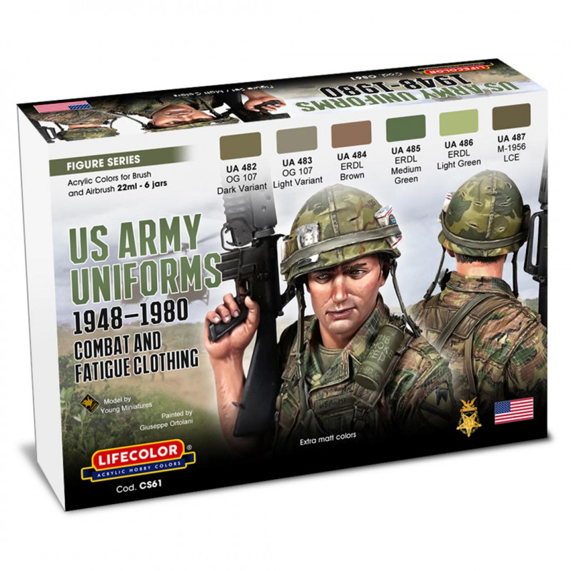 Set de 6 teintes pour réaliser les uniformes de l’armée américaine de 1948 à 1980.