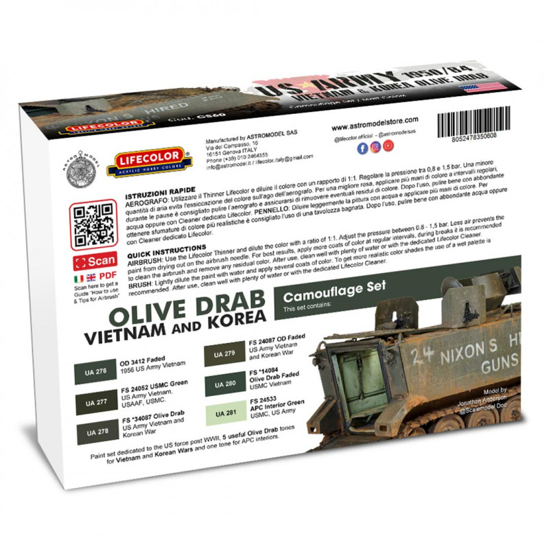 Plus de details En stock, disponible immédiatementPeinture acrylique Set Vert Olive de l’armée américaine de 1950 à 1984