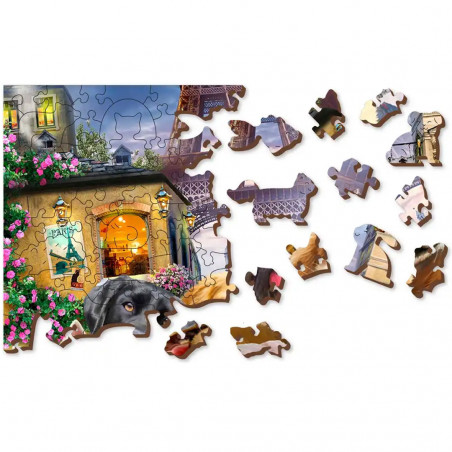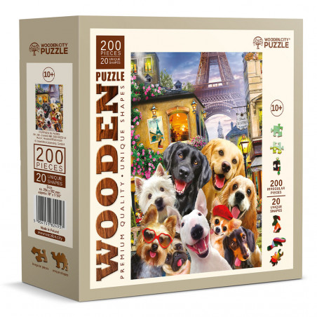 Scopri la magia del puzzle in legno Puppies in Paris da 200 pezzi, un jigsaw puzzle divertente e raffinato, perfetto per bambini e adulti dai 10 anni in su.
