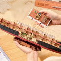 L'Eternal Atlantic Voyager del 1912 di Rolife rende omaggio ai più grandi transatlantici dell'epoca. Questo modello in scala cattura la bellezza e la grandezza di queste navi in miniatura. La sua costruzione potrebbe sembrare complessa, ma con sole 6 ore di montaggio e un livello di difficoltà a 4 stelle, i costruttori apprezzeranno la precisione dei dettagli senza che il processo risulti troppo complicato. Sarai conquistato dalla precisione dei dettagli. Lo scafo nero caratteristico della sovrastruttura ospita corridoi vuoti che rappresentano le cabine dei passeggeri, estendendosi su tre piani sotto il ponte. Un'illuminazione a LED ben distribuita mette in risalto i camini inclinati, le eliche in rotazione, i camini inclinati a 80° e l'interno classico delle suite. Con una dimensione di 495 x 85 x 184 mm una volta assemblato, il modello poggia su una base in legno che gli conferisce stabilità e presenta simboli che rappresentano la rotta della nave. La storia si svela attraverso racconti affascinanti mentre costruisci e ti immergi in questo progetto.