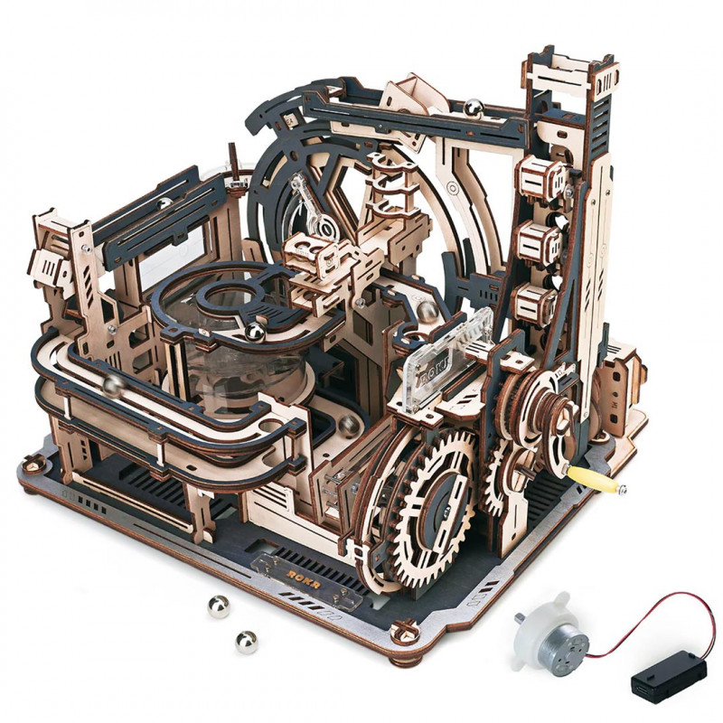 - Inspirée des « machines infernales » ce modèle est aussi passionnant à assembler qu’à faire fonctionner, fonctionnement sans pile à l’aide d’une manivelle ou en mode automatique grâce à son moteur électrique (alimentation à l’aide d’un cable USB type C non fourni)