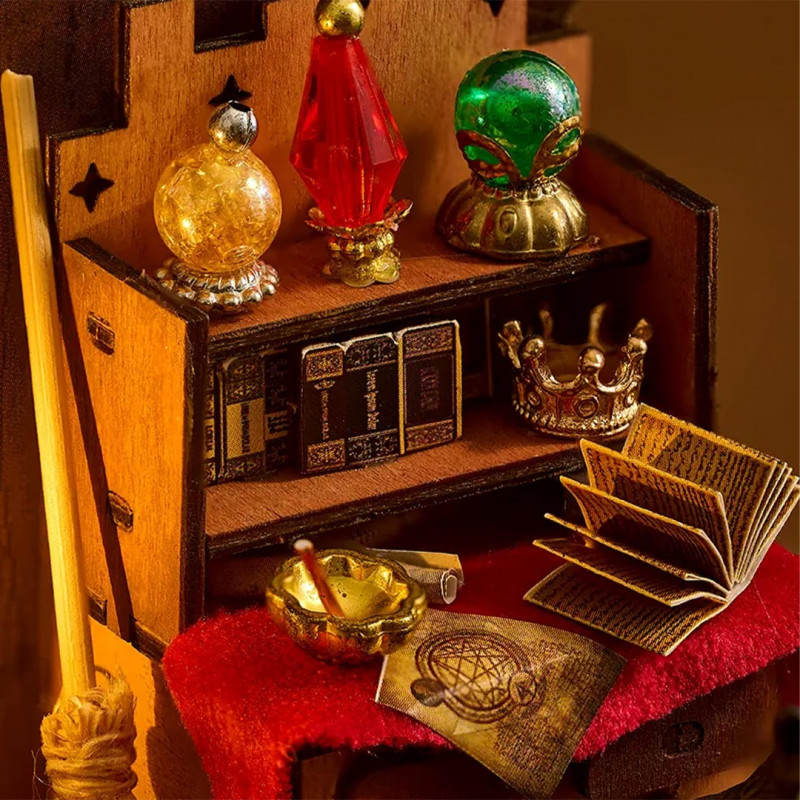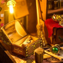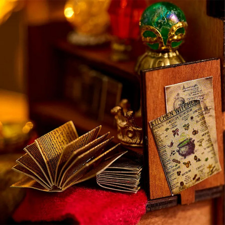 Un decor basato su un piccolo negozio pieno di oggetti legati alla magia, con effetti luminosi.
