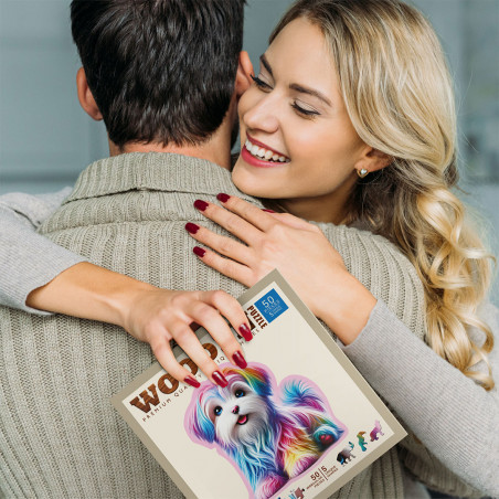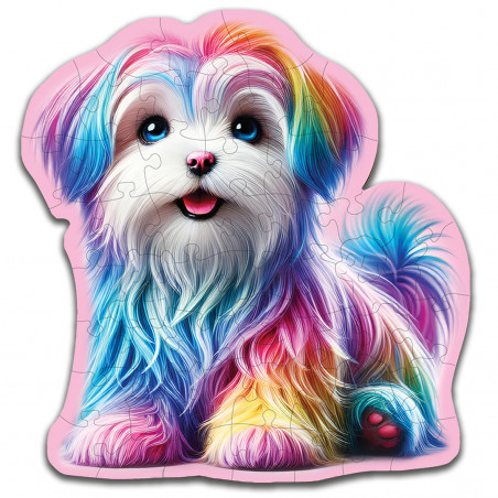 Scopri il Happy Puppy Puzzle in Legno Animali da 50 pezzi, un’esperienza affascinante che dà vita a un cane ricco di vivaci colori arcobaleno.