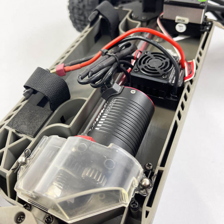 Équipé d’un moteur Brushless 2500 KV, d’un variateur HobbyWing 50A et la toute nouvelle radiocommande MHD4C 4 voies, il a tous les atouts pour satisfaire pleinement petits et grands, et les as de sensation au volant d’une voiture 1/10 de taille XL impressionnante (600 mm de longueur).