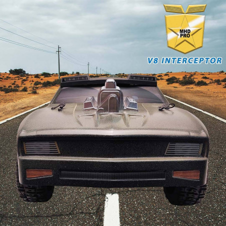 L’INTERCEPTOR V8 1/10 XL est inspirée d’une voiture mythique d’une célèbre trilogie des années 1979-2015 où l’action se déroule dans une société violente où la criminalité est en forte augmentation et le chaos se répand.