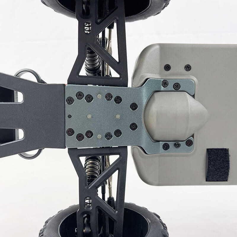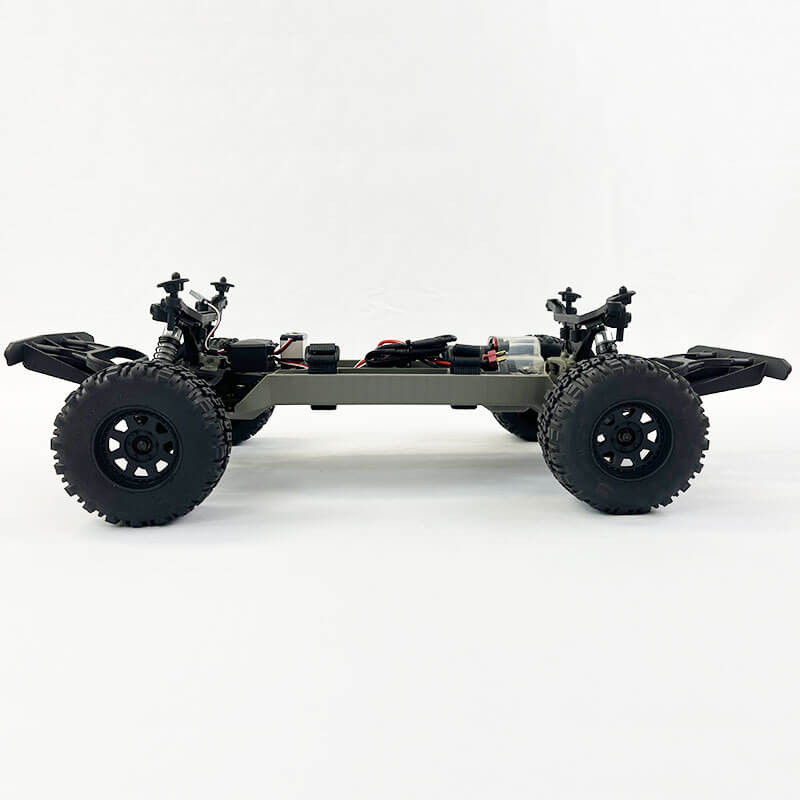 Disponible en 2 coloris différents, ce nouveau châssis 1/10 XL grâce à ses suspensions indépendantes et sa grande garde au sol vous permettra de vous amuser sur tous types de terrains en ce compris du gazon, du bitume, de la terre.