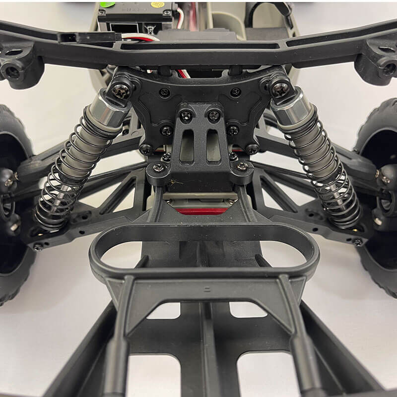 Disponible en 2 coloris différents, ce nouveau châssis 1/10 XL grâce à ses suspensions indépendantes et sa grande garde au sol vous permettra de vous amuser sur tous types de terrains en ce compris du gazon, du bitume, de la terre.