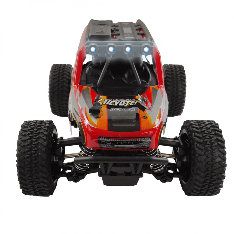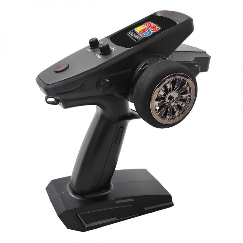 Il radiocomando che funziona sulla banda di frequenza 2,4 GHz consente un raggio d'azione paragonabile a quello dei modelli più grandi, su scala 1/10.