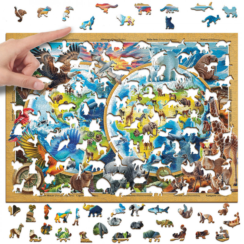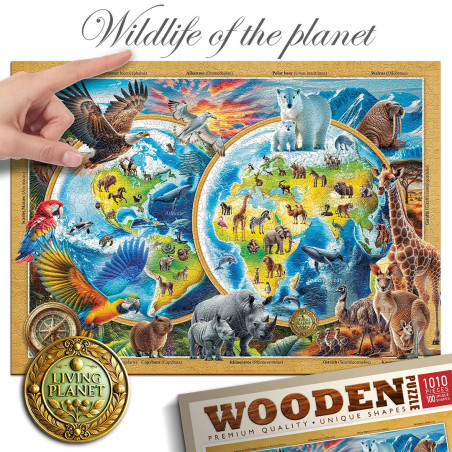 Scopri il fascino del puzzle in legno Wildlife of the Planet da 1000 pezzi, un jigsaw puzzle per adulti che celebra la biodiversità del pianeta con arte e precisione.
